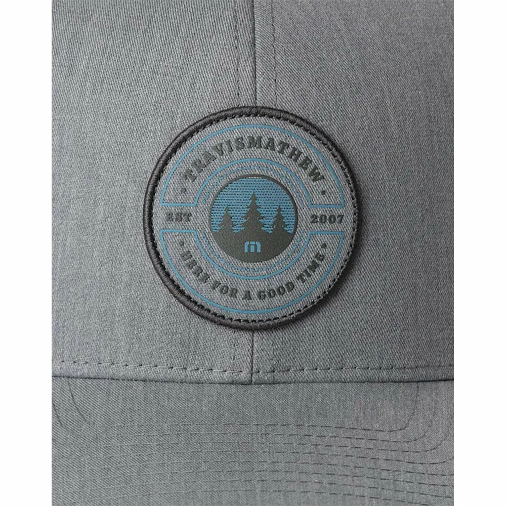 Keep your style looking fresh with the TravisMathew Chance of Humidity Golf Hat. This hat features Flexfit 110 technology that provides a stretch fit and the adjustable back closure lets you lock in the right fit. There is a circle patch with pine tree graphic and mesh on the back that will have you looking good on and off the golf course.